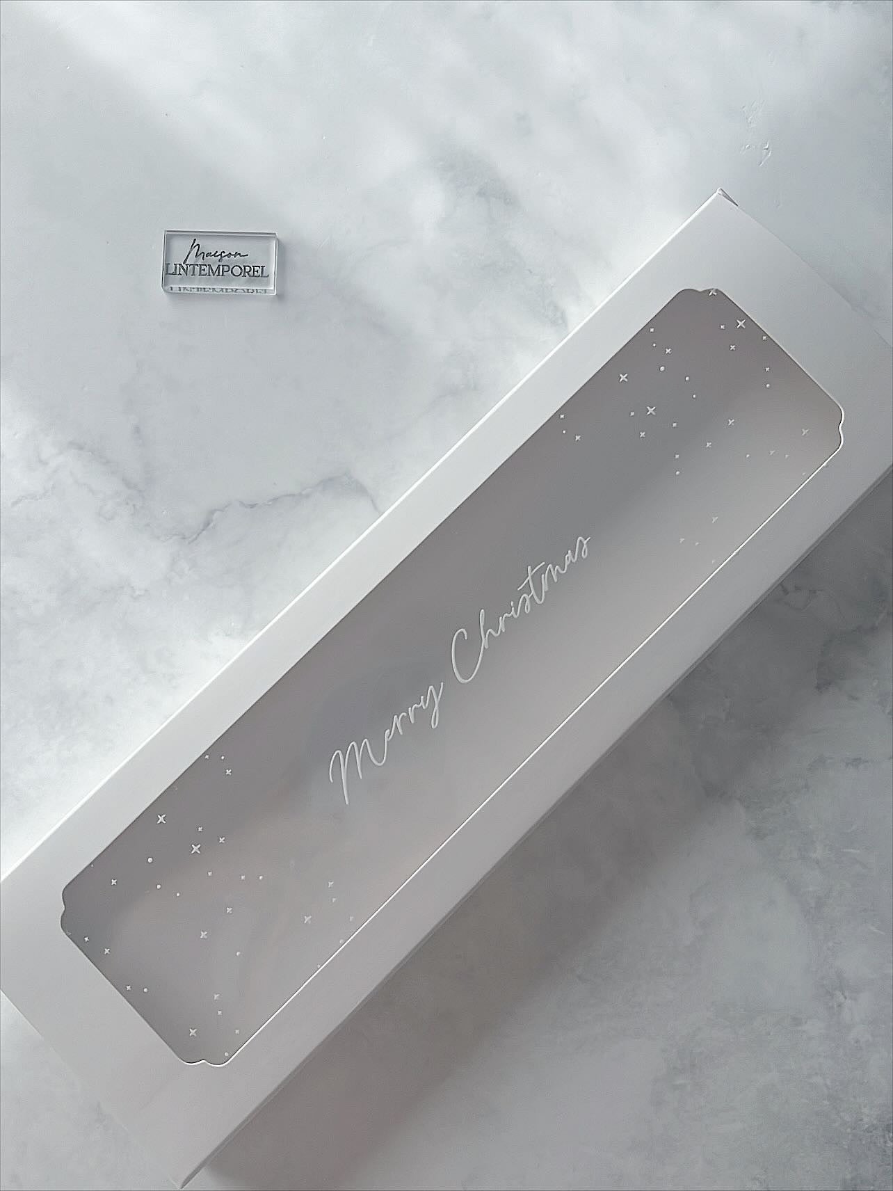 Offrez un écrin élégant à vos sablés avec cette boîte petit format personnalisée "Merry Delivery". Pensée pour accueillir 4 sablés de taille mini ( 5cm), elle associe raffinement, praticité et sécurité alimentaire.